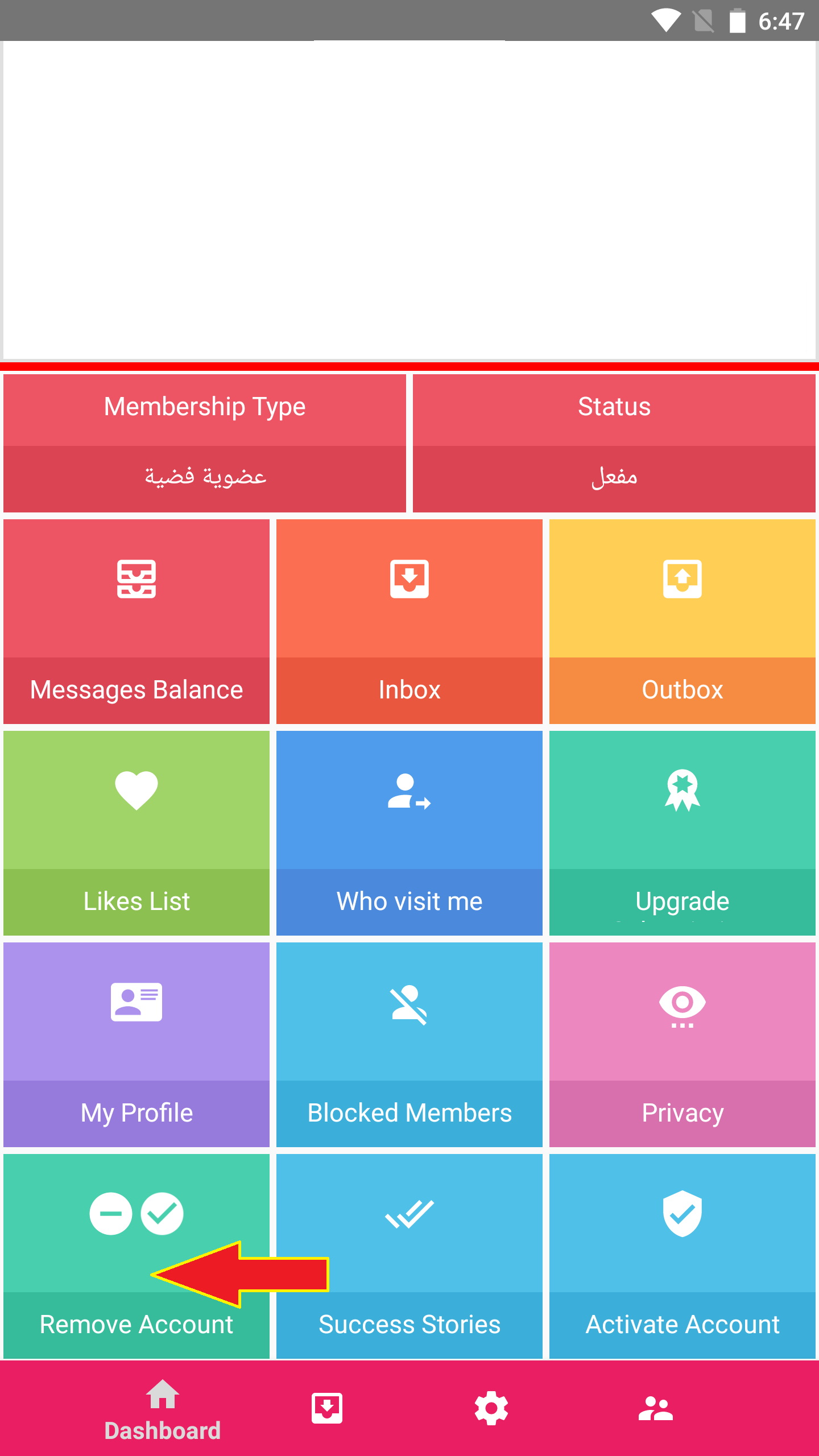 :لحذف حسابك من التطبيق يرجى اتباع الخطوات التالية